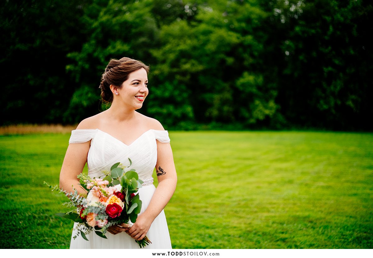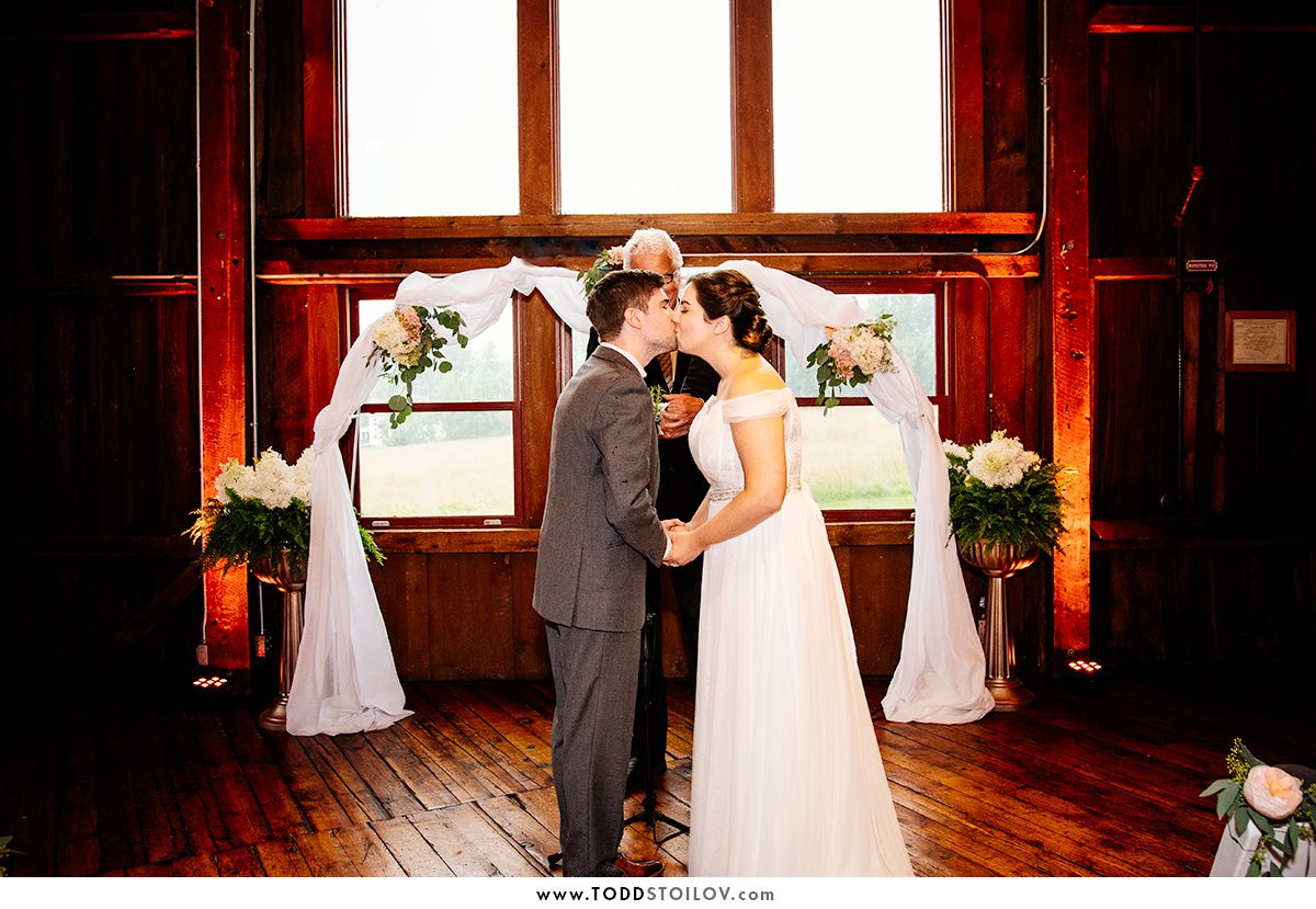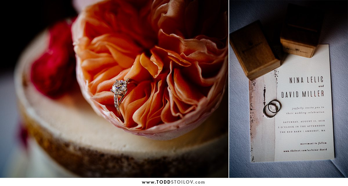 This week I made the drive down south to The Red Barn at Hampshire College for Nina and David’s big day. Unfortunately, thunderstorms were expected all day and the ceremony had to be moved inside. We caught a little break in the rain and we stepped out to take care of the formal portraits before the ceremony. Nina and David soldiered on and we did so much in such a short time. By the time the rain returned we were already done and the results were great. Nina even got to twirl in her super wavy dress. David and Nina tied the knot and sealed it with a kiss in front of their friends and family, most of which came from all over the US. The party included some great food, delicious cake and even peach cobbler with ice cream!